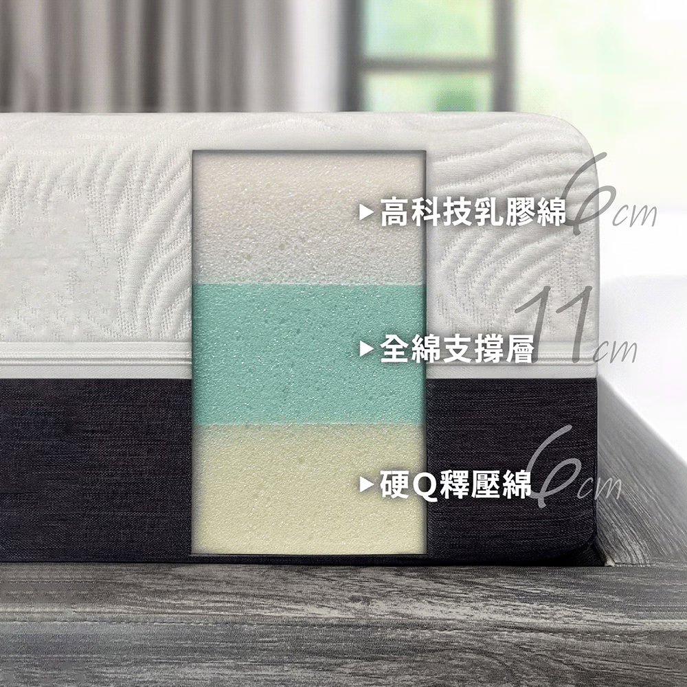 - 材質:天絲布料、柔軟包覆綿、高科技乳膠綿、全綿支撐綿體、硬Q釋壓綿